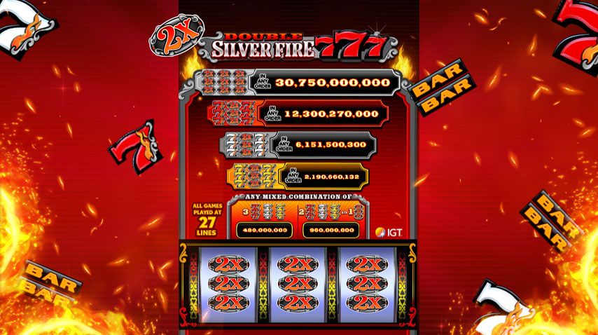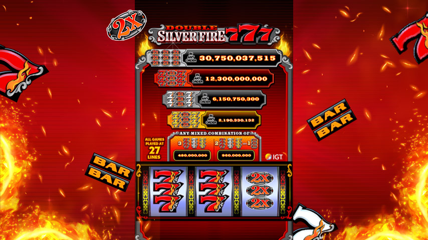 Take your chance at the 9 levels to win: 3 combos for stacked Red Sevens, White Sevens and Yellow Sevens Jackpot! Win the ultimate Double Silver Fire 777 Jackpot when you land a blackout of 2X Wild symbols with the max bet on all reel positions! Watch the corresponding meters, as they showcase the jackpot win and line values for the displayed symbol combos.